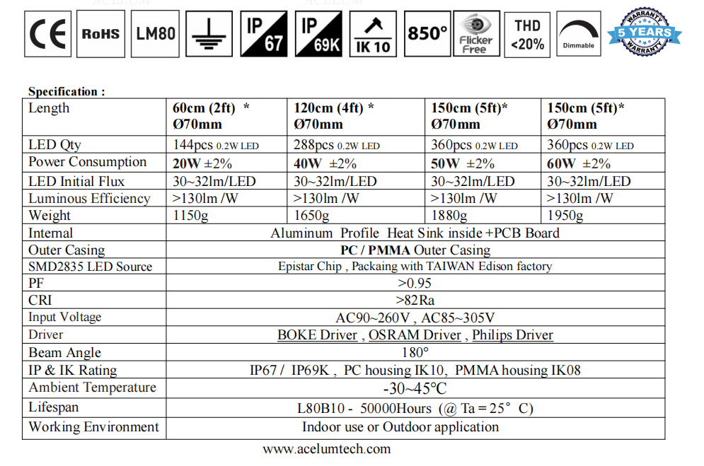 IP69K Tubular LED Tri-Proof Light / Tubulaire Réglette Étanche LED / IP69K Tubular LED Tri-Proof Light